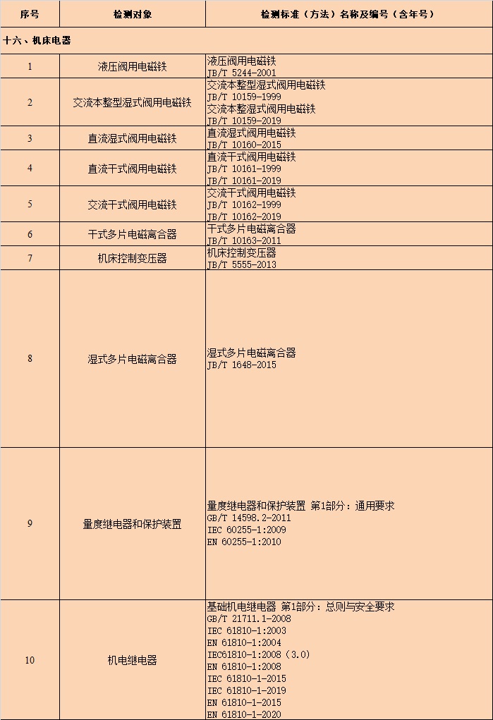 • 機床電器檢測——依據國家標準、行業標準,完成有關交直流電磁鐵、離合器、控制變壓器、繼電器等機床電器的全部出廠試驗、型式試驗和定期試驗項目。