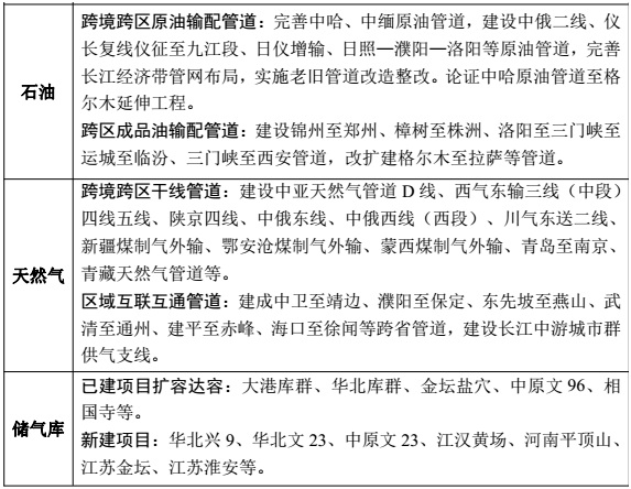 ——儲(chǔ)備應(yīng)急設(shè)施。 加快石油儲(chǔ)備體系建設(shè), 全面建成國家石油儲(chǔ)備二期工程, 啟動(dòng)后續(xù)項(xiàng)目前期工作, 鼓勵(lì)商業(yè)儲(chǔ)備, 合理提高石油儲(chǔ)備規(guī)模。 加大儲(chǔ)氣庫建設(shè)力度, 加快建設(shè)沿海 LNG 和城市儲(chǔ)氣調(diào)峰設(shè)施。 推進(jìn)大型煤炭儲(chǔ)配基地和煤炭物流園區(qū)建設(shè), 完善煤炭應(yīng)急儲(chǔ)備體系。