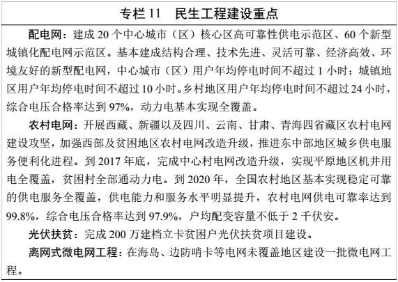 全面推進(jìn)能源惠民工程建設(shè), 著力完善用能基礎(chǔ)設(shè)施,精準(zhǔn)實(shí)施能源扶貧工程, 切實(shí)提高能源普遍服務(wù)水平, 實(shí)現(xiàn)全民共享能源福利。完善居民用能基礎(chǔ)設(shè)施。 推進(jìn)新一輪農(nóng)村電網(wǎng)改造升級(jí)