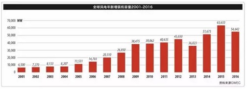 全球風能理事會在印度新德里發布《全球風電報告:年度市場發展》。《報告》顯示,2016年中國風電累計、新增裝機容量均居全球第一。2016 年全球風電新增裝機容量超過 54GW, 其中 9 個國家的裝機容量超過10GW,累計容量達到 486.8GW,累計裝機容量增長 12.6%。