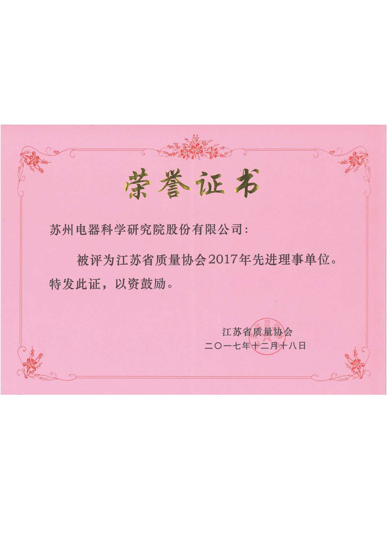 蘇州電科院喜獲江蘇省質(zhì)量協(xié)會(huì)先進(jìn)理事單位