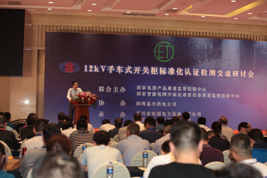 2018年5月5日,由國(guó)家電器產(chǎn)品質(zhì)量監(jiān)督檢驗(yàn)中心和國(guó)家智能電網(wǎng)中高壓成套設(shè)備質(zhì)量監(jiān)督檢驗(yàn)中心聯(lián)合主辦、國(guó)網(wǎng)嘉興供電公司協(xié)辦、嘉興市恒創(chuàng)電力設(shè)備有限公司和浙江聚弘凱電氣有限公司承辦的12kV手車式開(kāi)關(guān)柜標(biāo)準(zhǔn)化認(rèn)證檢測(cè)交流研討會(huì)在浙江省嘉興富悅大酒店順利召開(kāi)。