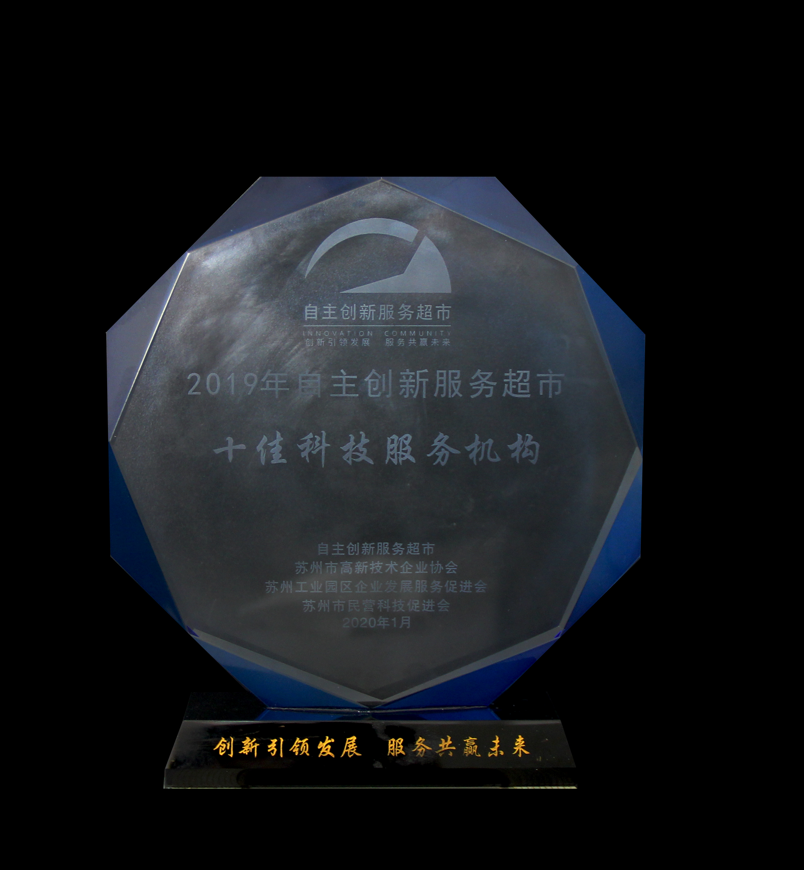 2020年1月17日,“2019年度自主創新服務超市年終頒獎典禮”在蘇州舉行,該活動由蘇州自主創新服務超市、蘇州市高新技術企業協會、蘇州工業園區企業發展服務促進會、蘇州市民營科技促進會主辦。