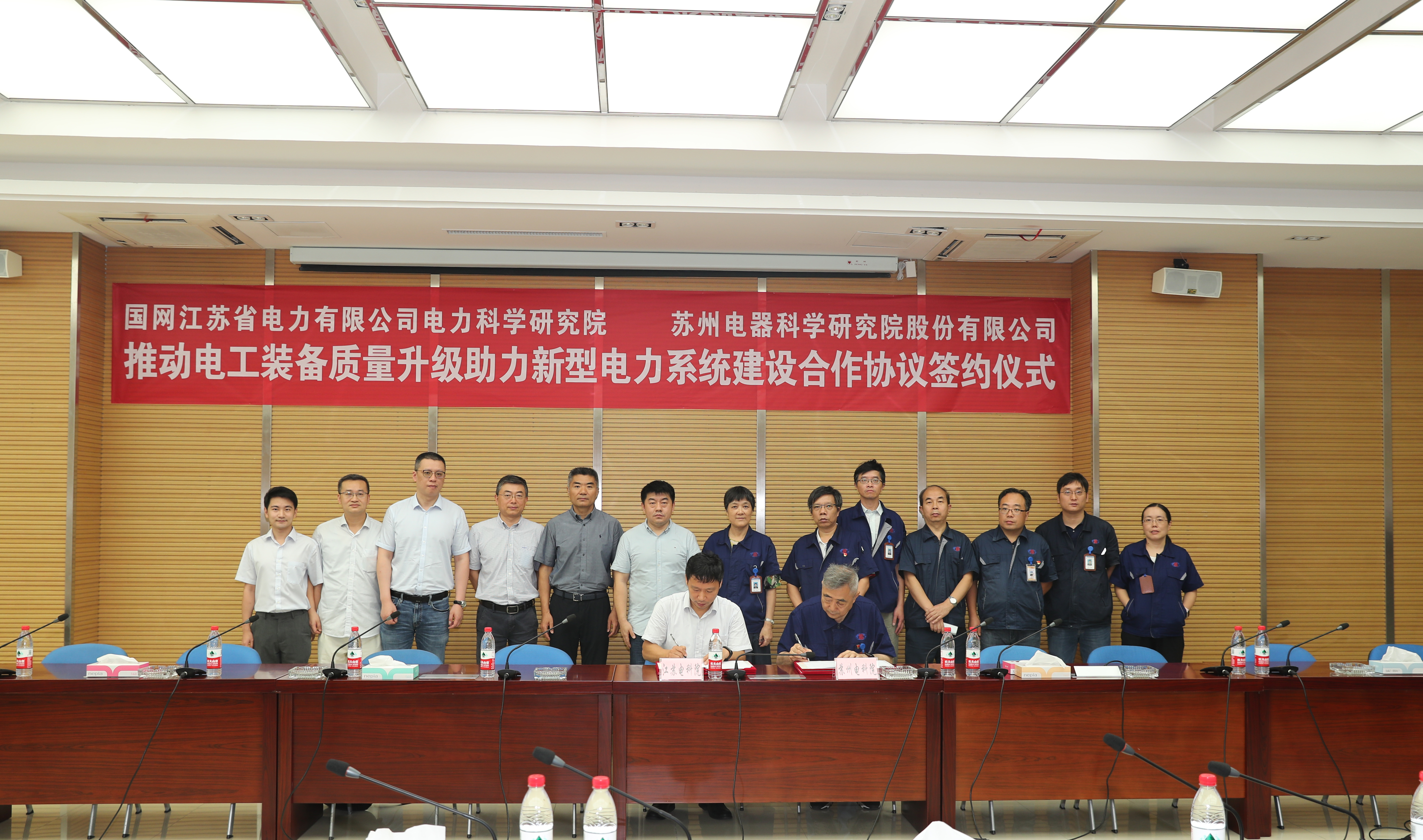 2021年9月10日上午,蘇州電器科學研究院股份有限公司與國家電網江蘇省電力公司舉辦了高質量電工裝備支撐新型電力系統建設長期友好戰略合作簽約儀式。國網江蘇省電力公司物資部高正平副主任、國網江蘇省電科院蔡云峰副院長等出席了本次活動。