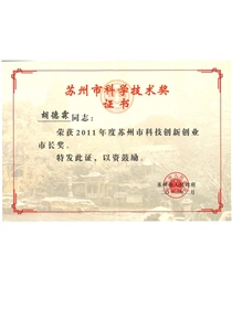 Suzhou Mayor Award for Scientific and Technological Innovation and Entrepreneurship in 2011