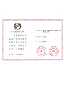 Third Science and Technology Award of the China Machinery Industry (Certificate)