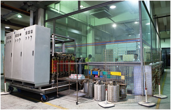 Environmental Test – can perform high and low temperature test, humid heat test, salt spray test, IP test upon electric apparatus, and the volume of dust-proof test box is 420m³, which could conduct IP test in the range of IP00-IP68